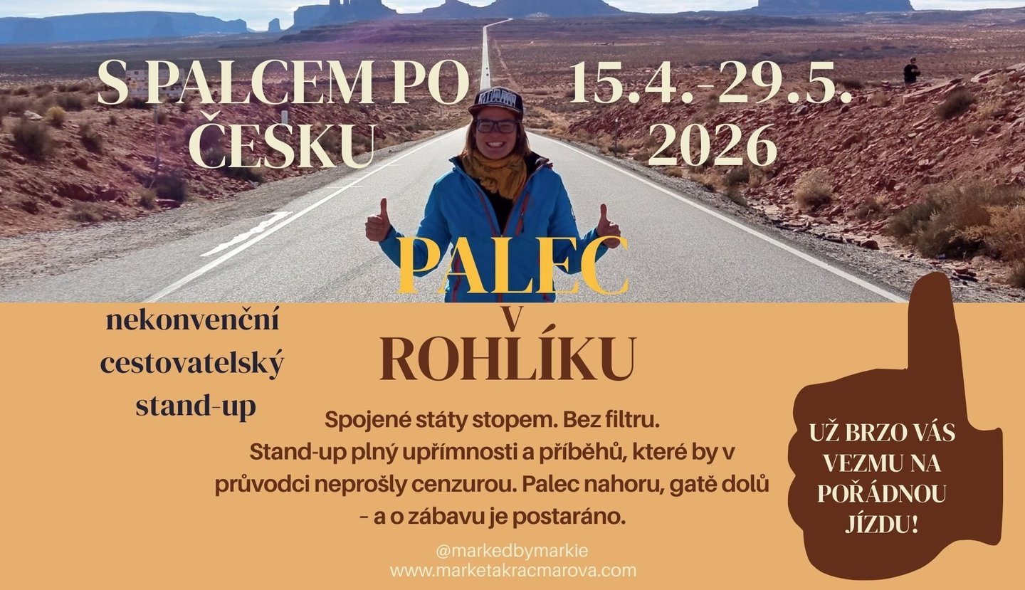 Čeká vás zábavná a lehce šílená přednáška o tom, co všechno se dá zažít, když člověk zvedne palec a vydá se do světa. Ukážu fotky, prozradím, jak se stopuje v USA, a možná se dozvíte i pár věcí, které jste radši vědět nechtěli.