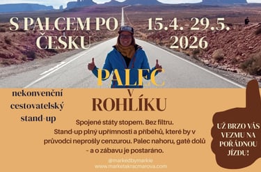 Mezi jednotlivými zastávkami budu samozřejmě stopovat a hodným řidičům na oplátku věnuju výtisk Palce v rohlíku.
