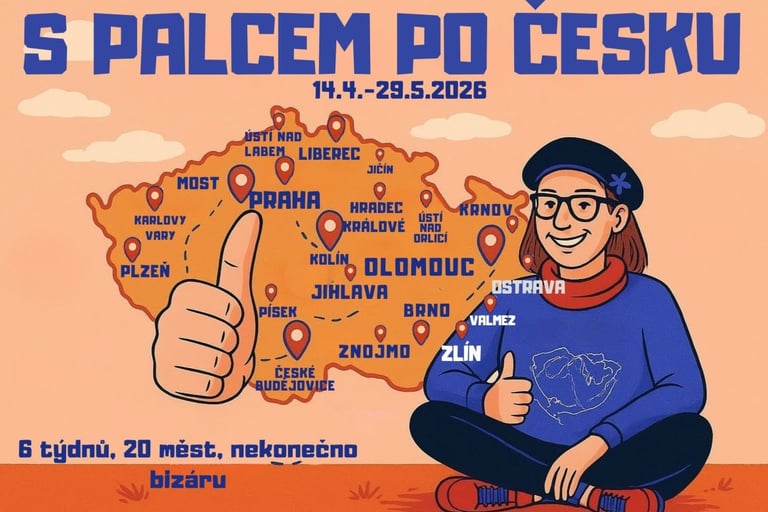 Na jaře 2026 balím batoh, zvedám palec a vyrážím na dobrodružnou tour po celé České republice!